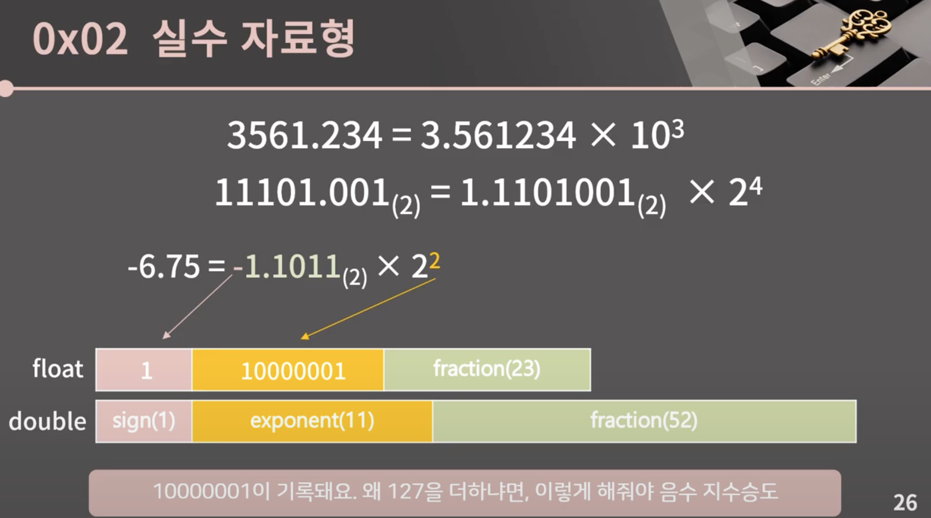 exponent 는 지수를, fraction 은 유효숫자를 저장한다.