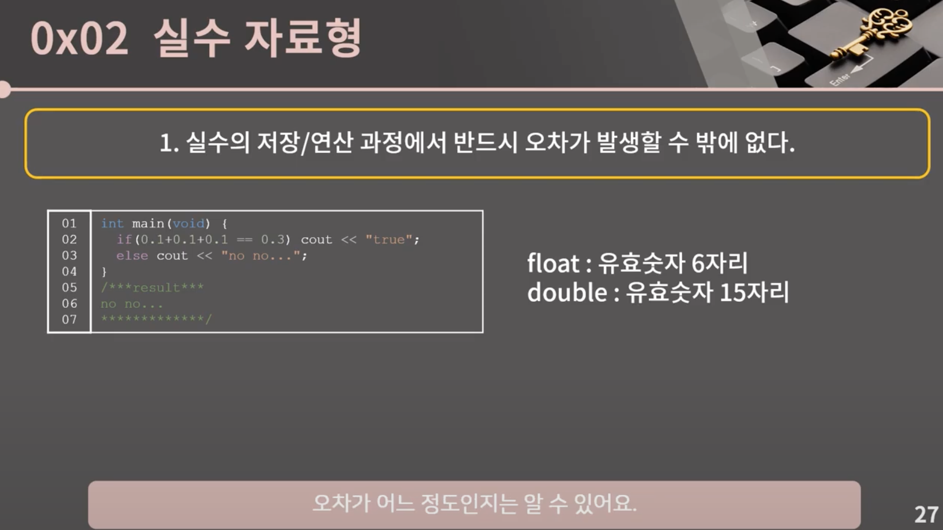 실수 자료형에서 꼭 기억해야 하는 실수의 특징!