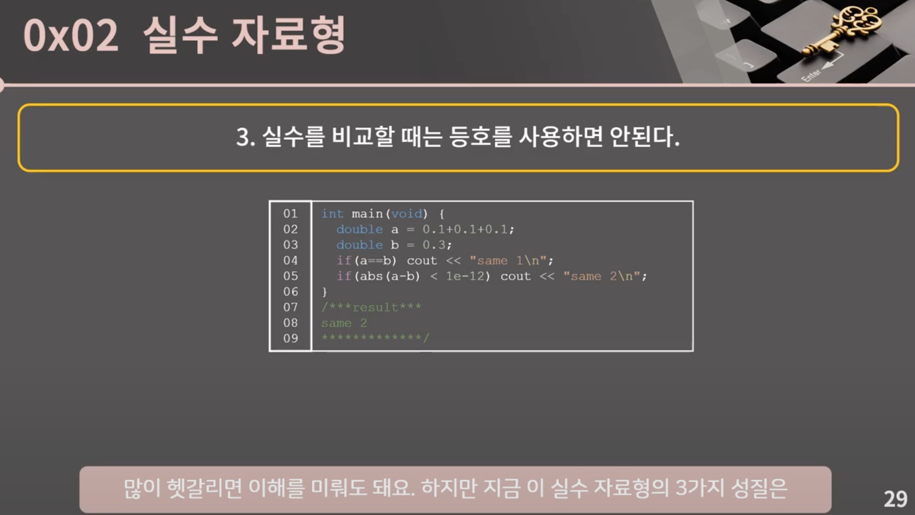 3. 실수 비교시에는 등호를 사용하면 안된다.