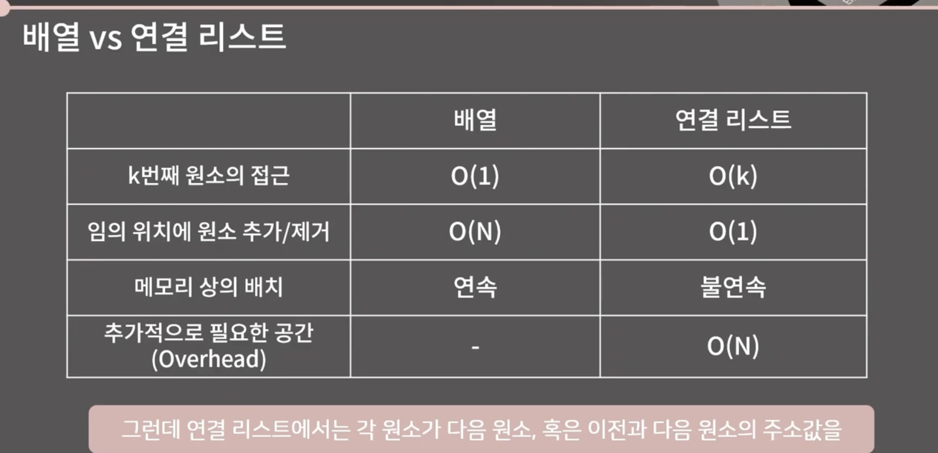 연결 리스트에서 추가적으로 필요한 공간은, 다음 요소의 주소를 저장하는 공간을 의미한다.